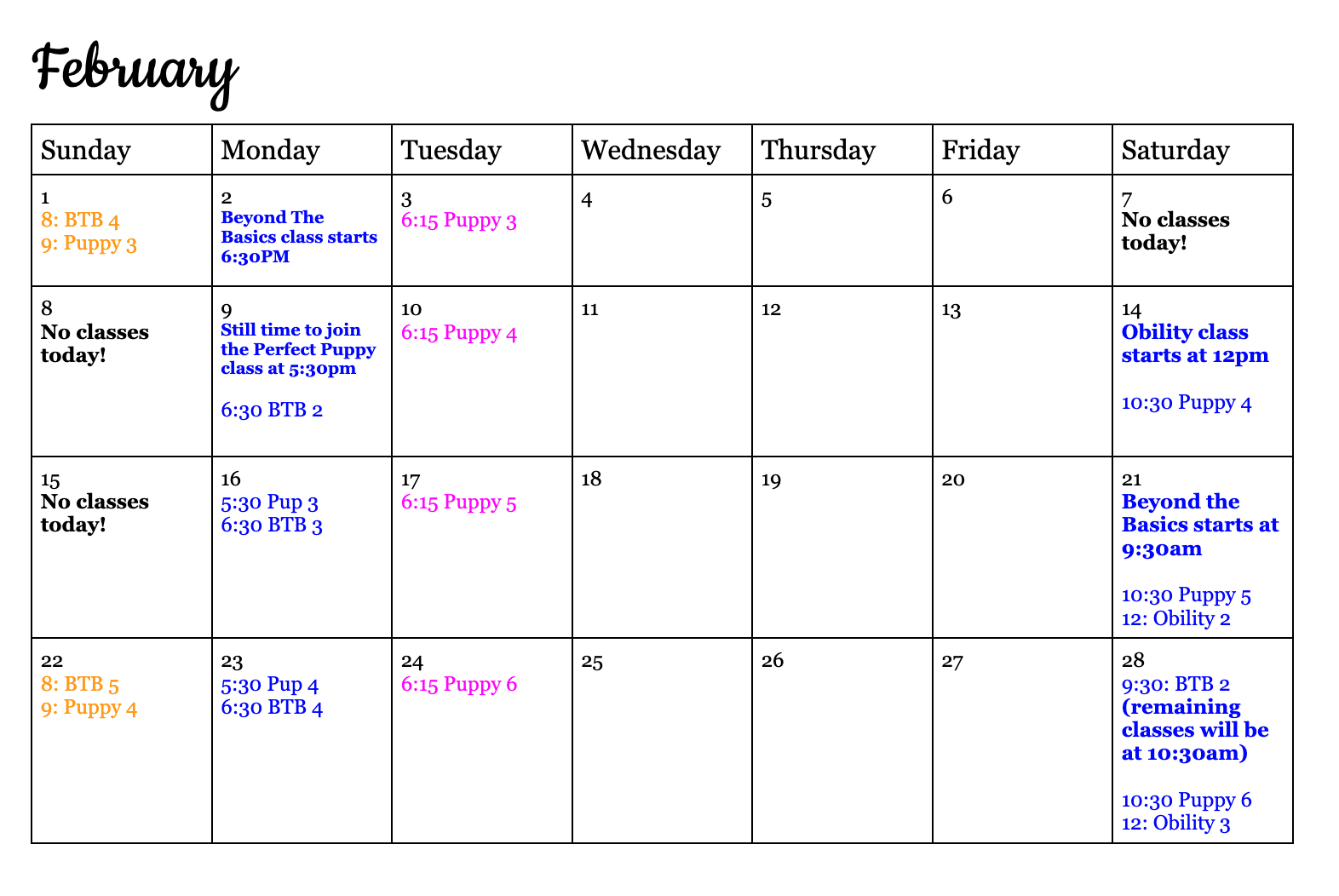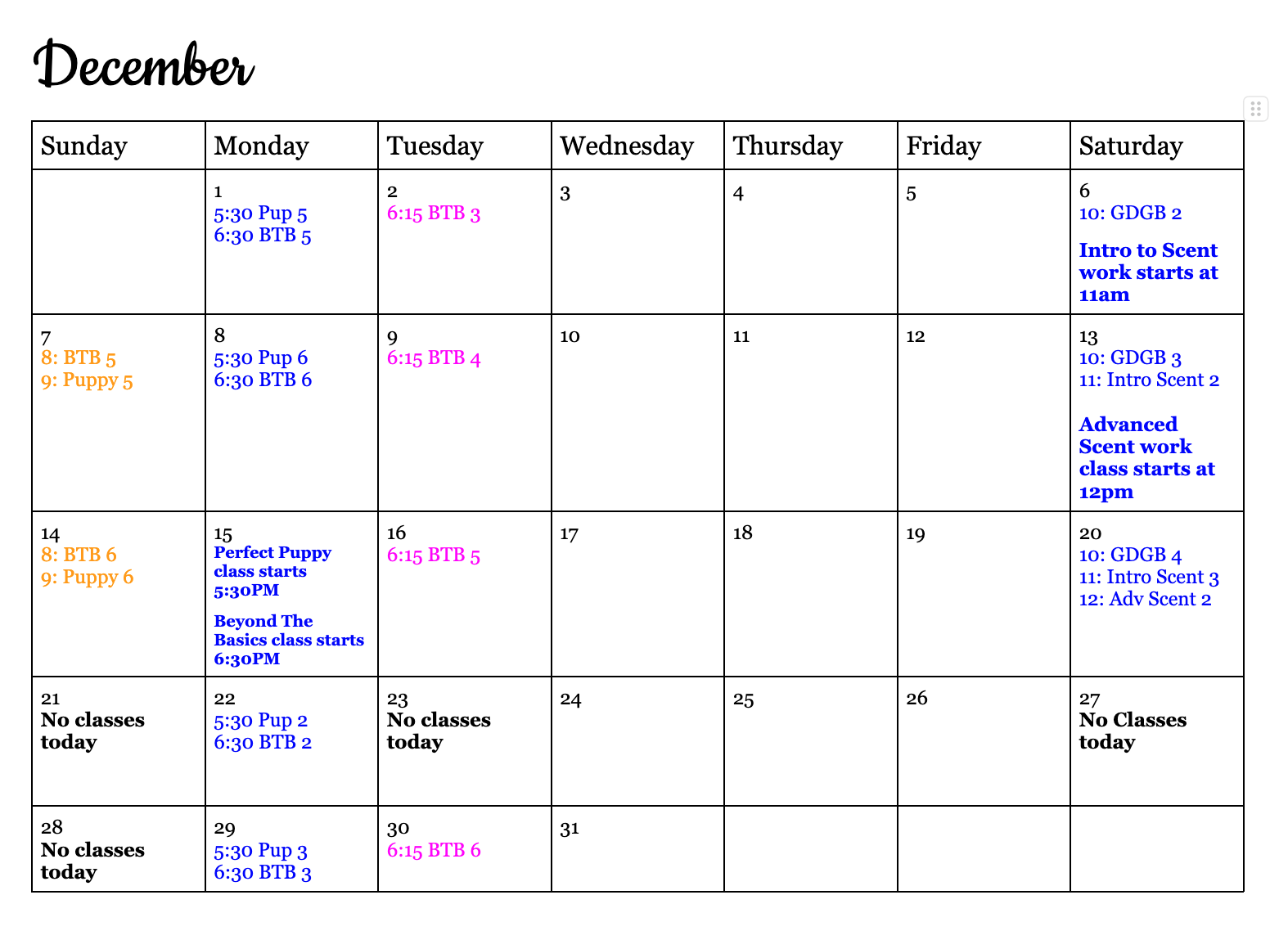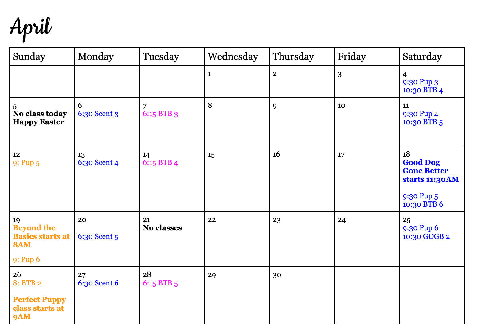 Stand By Me Doggie Daycare classes are held Tuesday evenings