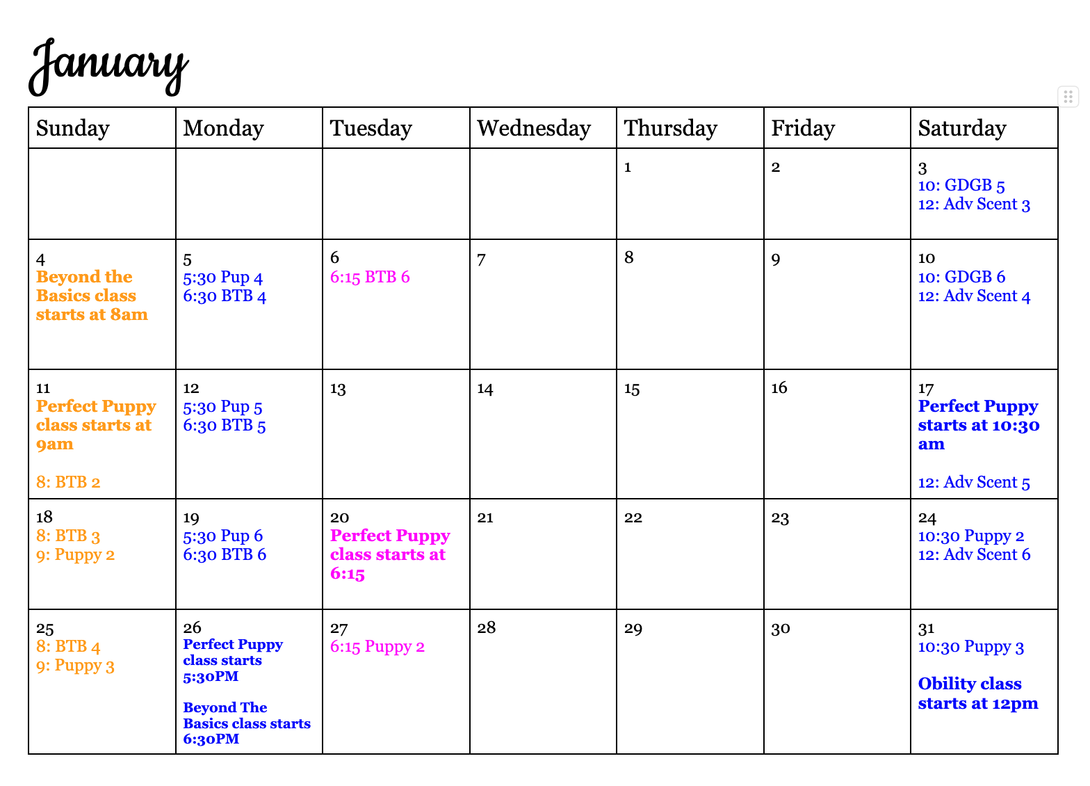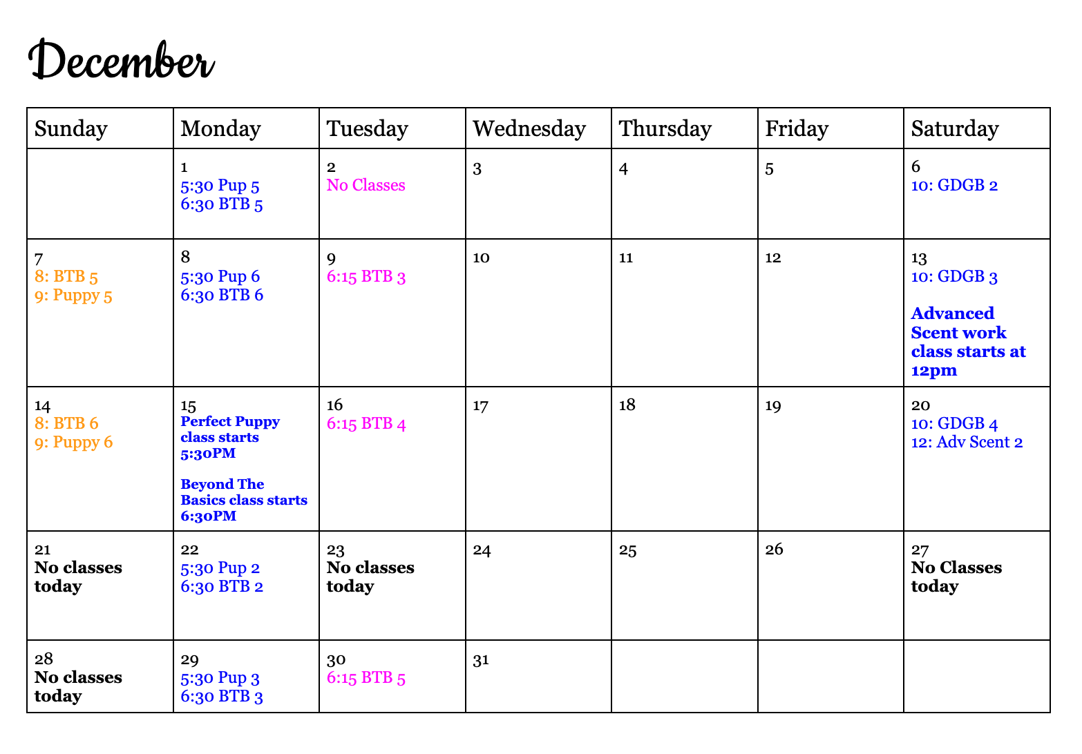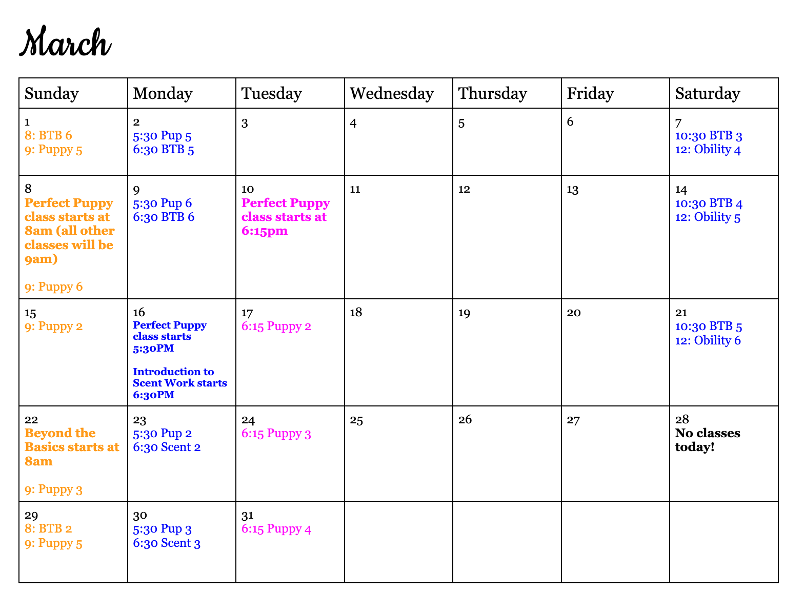 Stand By Me Doggie Daycare classes are held Tuesday evenings