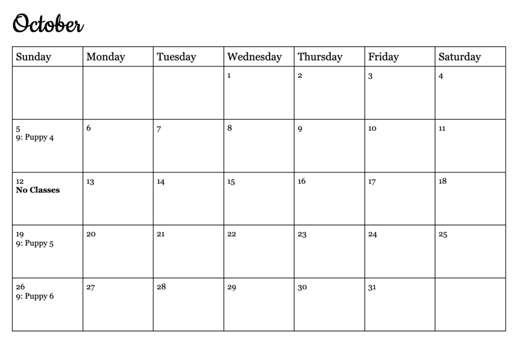 - All classes meet the same day and time of the week for either 4 or 6 consecutive weeks.