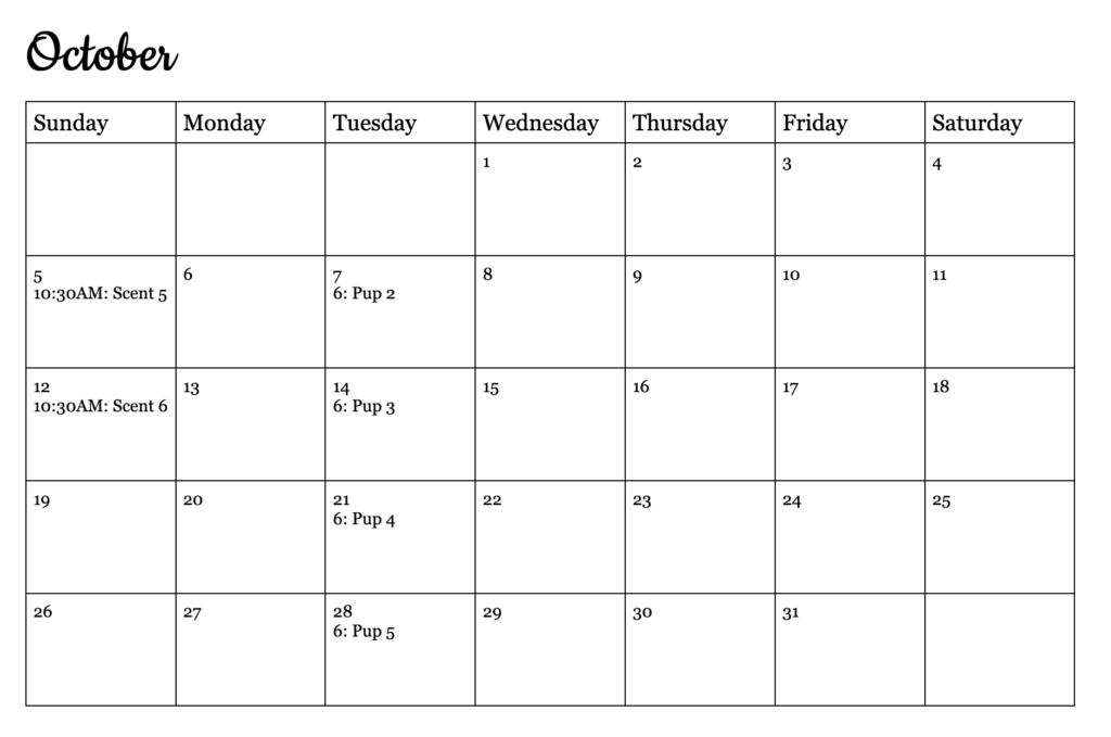 Scent Work/Nose Work: Your dog will learn to detect odors with their most powerful sense, their nose! A dog’s sense of smell is up to 1,000,000 times more accurate than humans. Scent work is a great way to help your dog hone in on their skills as your dog learns how to detect distinct smells and alert you when they have found them. Scent work provides mental stimulation that tires dogs out, increases their quality of life and can reduce behavioral problems related to anxiety and boredom. The best part is any dog can do it. Your dog doesn’t need to be a certain age, breed, or sex. All dogs benefit from scent work because it builds their confidence making them happier and healthier.